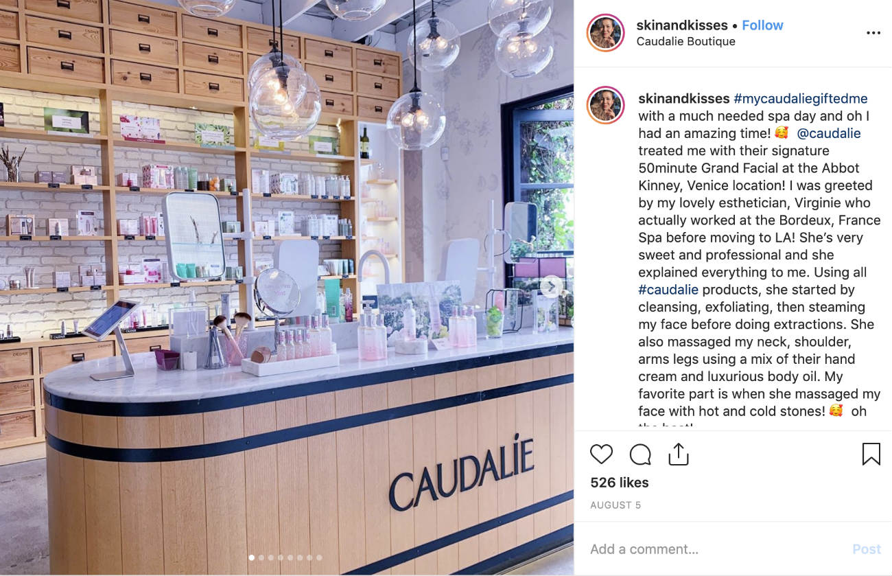 One brand that did this well is the skincare company Caudalie, which invited the micro-influencer @skinandkisses to one of its locations: