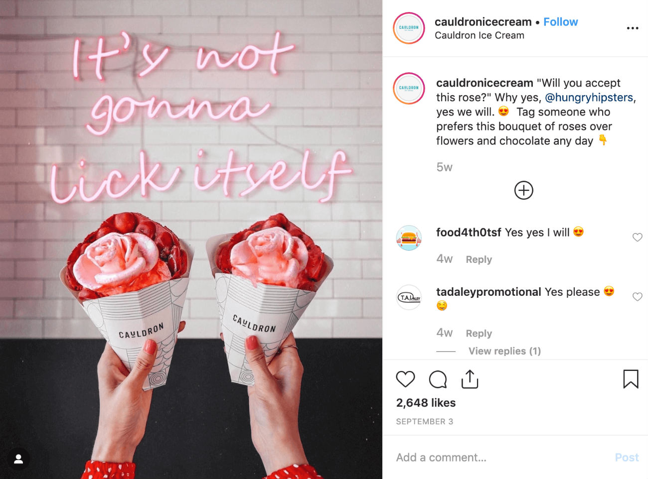 The ice cream shop Cauldron does a killer job at this. Aside from creating beautiful ice cream cones, Cauldron has an Instagram wall in its stores to encourage customers to take pictures.