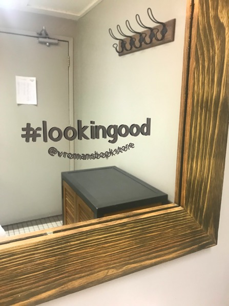 Vroman’s Bookstore, once again, excels at this. The bookstore’s restroom mirror has stickers with the words #lookinggood and the store’s Instagram handle (@vromansbookstore) — both of which subtly encourage people to snap pictures and get them talking about the brand on social media.