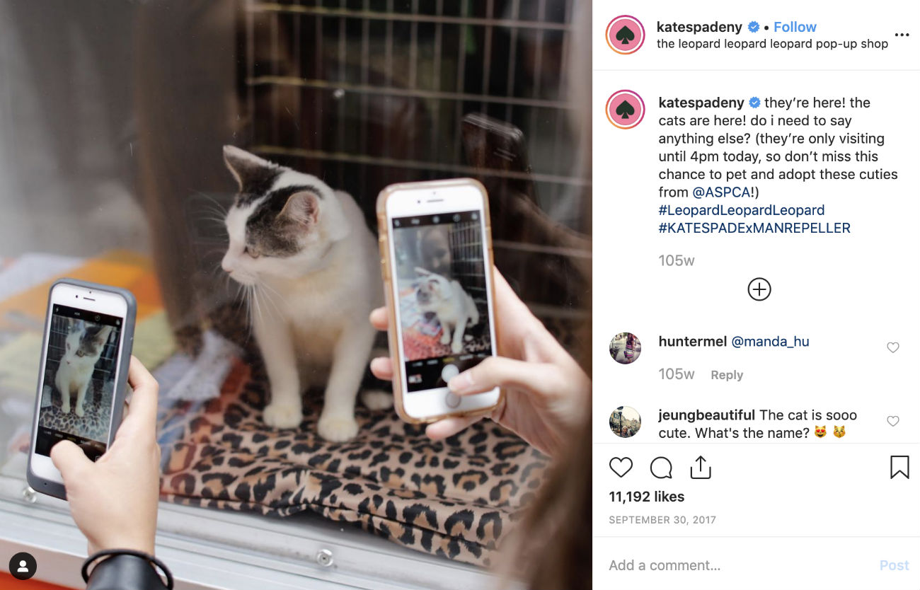 Check out what Kate Spade did a while back when the company brought real -waiting to be adopted- cats to help promote its pop-up store.