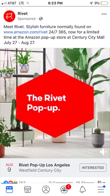 For instance, when Rivet, a furniture brand by Amazon, launched a pop-up store in Los Angeles, the company ran Facebook ads geared towards Southern California residents inviting them to check out the space.