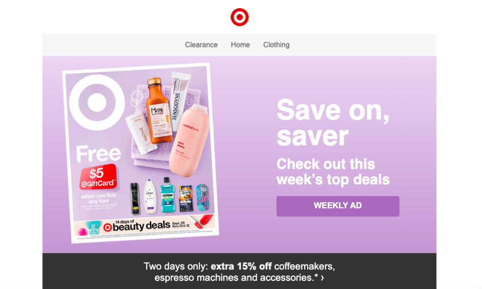 Take Target, which emails customers on a weekly basis with information about deals, new arrivals, promotions, and more.