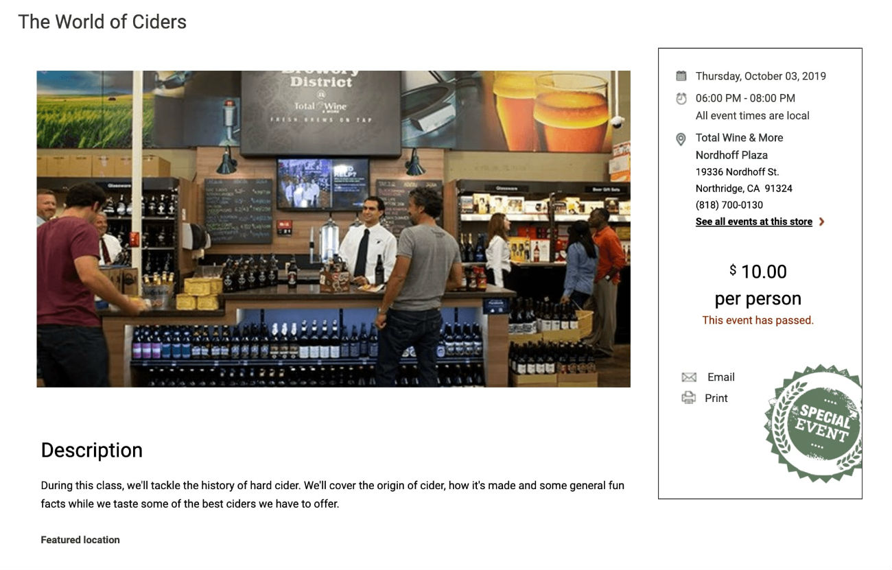 Total Wine & More, on the other hand, holds regular classes on various types of beverages.