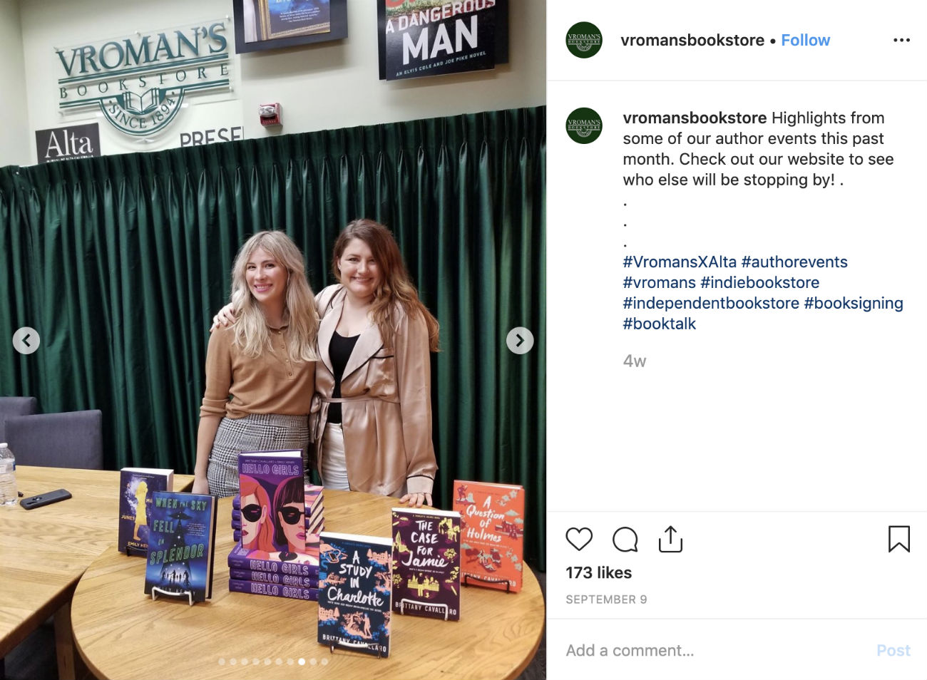 Vroman’s Bookstore in Pasadena, CA, for instance, regularly has authors speak and do book signings in its store. The practice enables Vroman’s to tap into the authors’ audience and helps put the bookstore in front of readers who may not have been familiar with the shop.