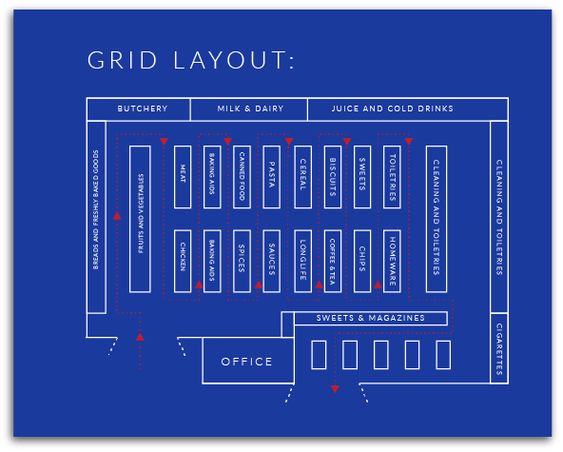 The IKEA layout is the type where you draw a “forced path” for the customer, leading the way you have designed for them. Using this type allows the retailer to place the items on the path of the customer, and it is an excellent way for upselling.