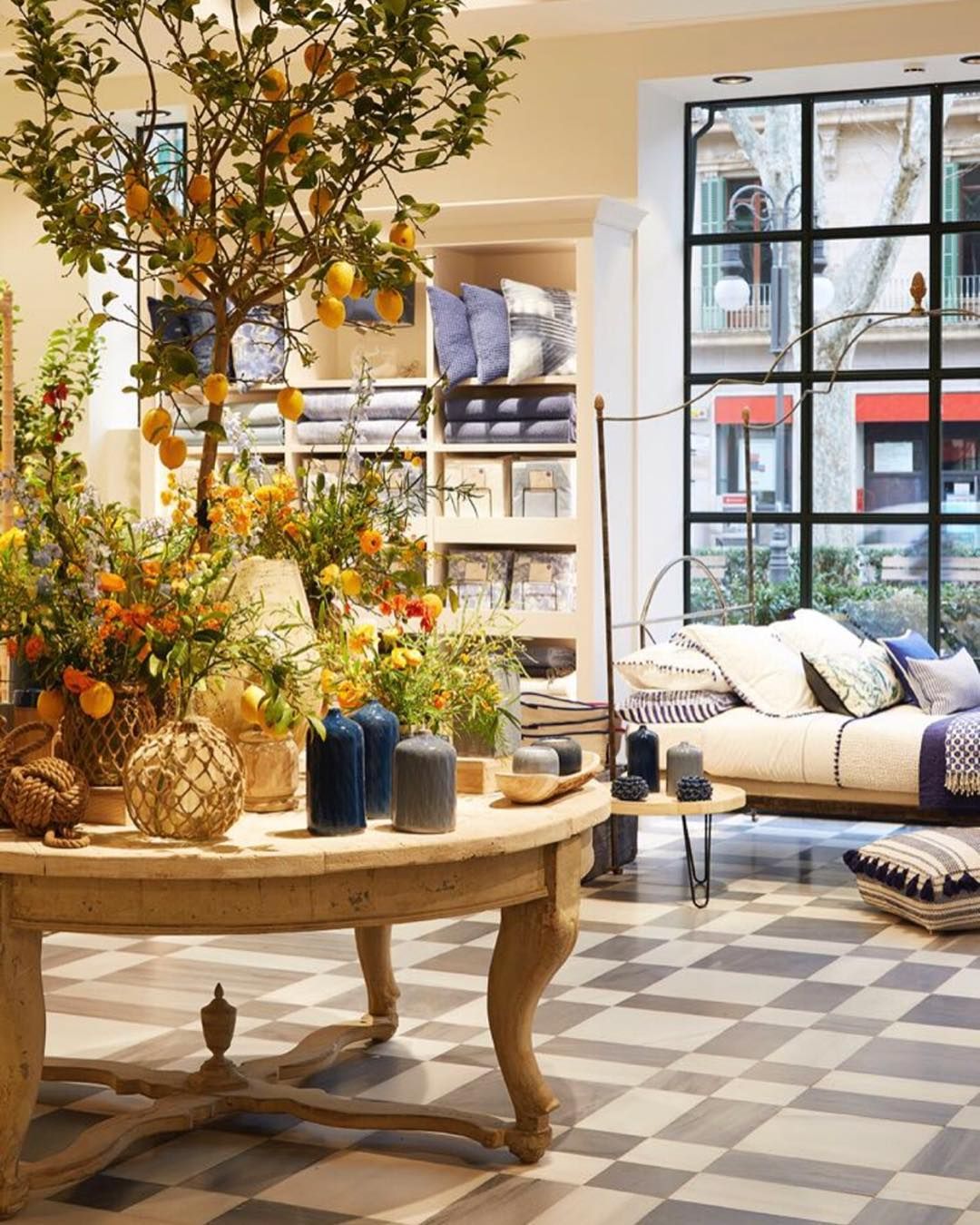 International fast-fashion giant Zara’s homeware-focused specialty brand Zara Home showcases bedding alongside home décor items, creating a cozy ambiance at this store in Palma de Mallorca, Spain.