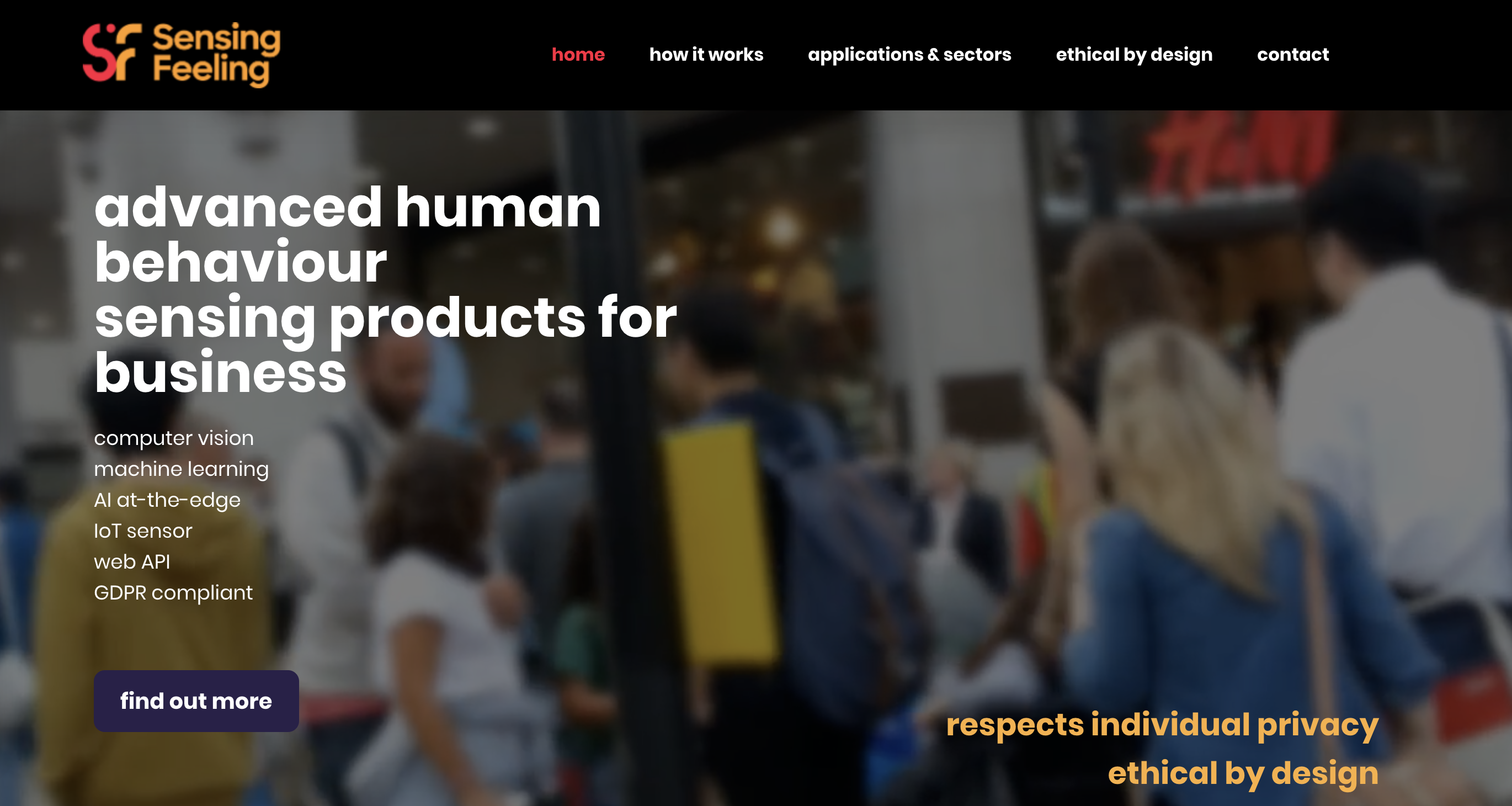 What they do: A relatively new startup, Sensing Feeling uses IoT technology to detect and analyze the behavior of groups of people in certain physical spaces based on their facial expressions. This technology provides real-time data on a web-based console without infringing on the privacy of users, as there is no facial recognition or video recording involved.